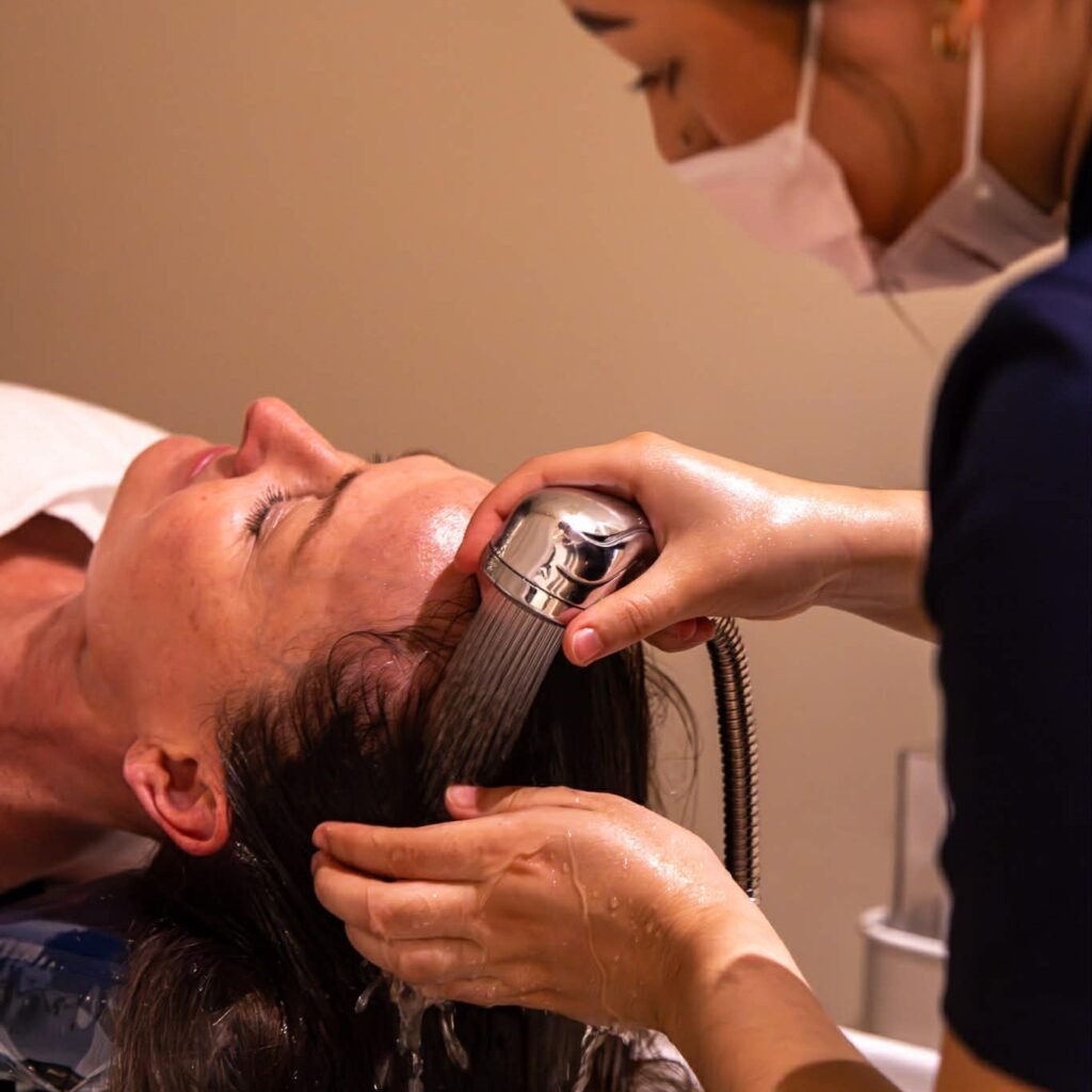 Each experience includes scalp care tailored to your individual hair and scalp needs. Cleansing and treatment steps are selected to support comfort, balance, and long-term scalp health while maintaining the calm, unhurried flow of the experience.